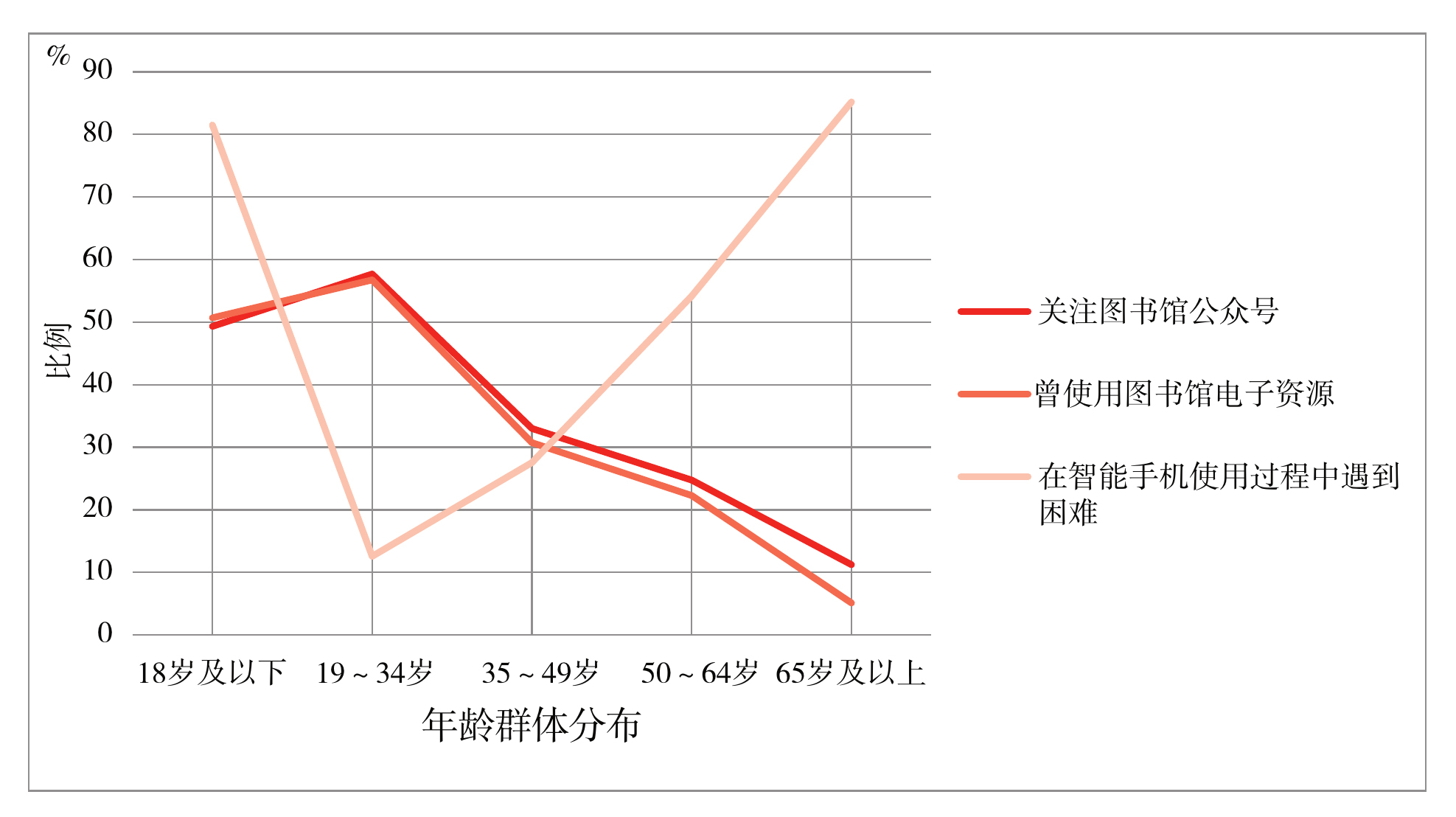浙江省不同年龄群体的数字公共文化服务体验分布图