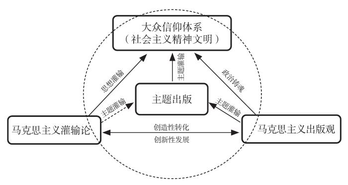 主题出版和马克思主义出版观的一个共同特性是同属于政治传播领域。无论是马克思主义出版观的党性原则,还是主题出版的“围绕中心、服务大局”,都共同指向了政治传播的行为属性并且以灌输和主题宣传的方式迈向建构大众信仰体系这一最终目标。在西方的政治行为研究中,大众信仰体系与传播有着密切的关联,政治传播行为是塑造大众信仰体系的有效手段。[11]在中国的传媒体制下,马克思主义出版观与主题出版分别是服务于社会主义精神文明的价值规范和实践路径,它们以马克思主义基本原理“灌输论”作为理论基础并以主题灌输的方式加以落实。