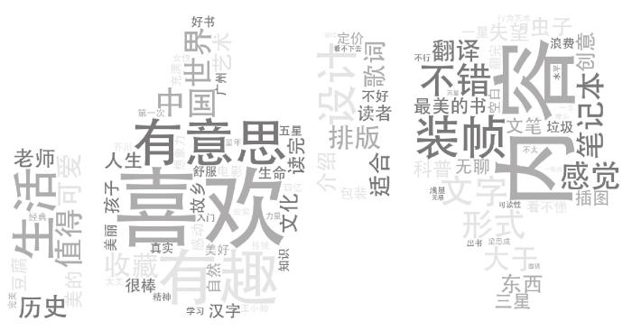 | 对“审美效果”的元表述 | 有趣/17th 美/22nd 有意思/30th 好看/39th 可爱/65th 精美/69th 最美/91st 风格/95th 创意/100th | 很简单但创意不简单。有的排版虽磨人,但整体装帧很美…… ——《痛》豆瓣评论 好看,可爱,不晓得怎么在不破坏它的美感的情况下爬格子…… ——《虫子书》豆瓣评论 |