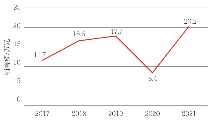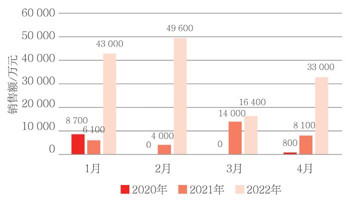 调查发现,在“破圈”之后,密集报道在短期内大幅提升了人文考古书店的图书销售额和社交媒体粉丝量。根据人文考古书店提供的数据,其2021年营业额达到了历史新高,为20.2万元,如图1所示;2022年第一季度的营业额同比大幅增长,2022年1—4月的营业额相当于疫情前全年的营业额,如图2所示。