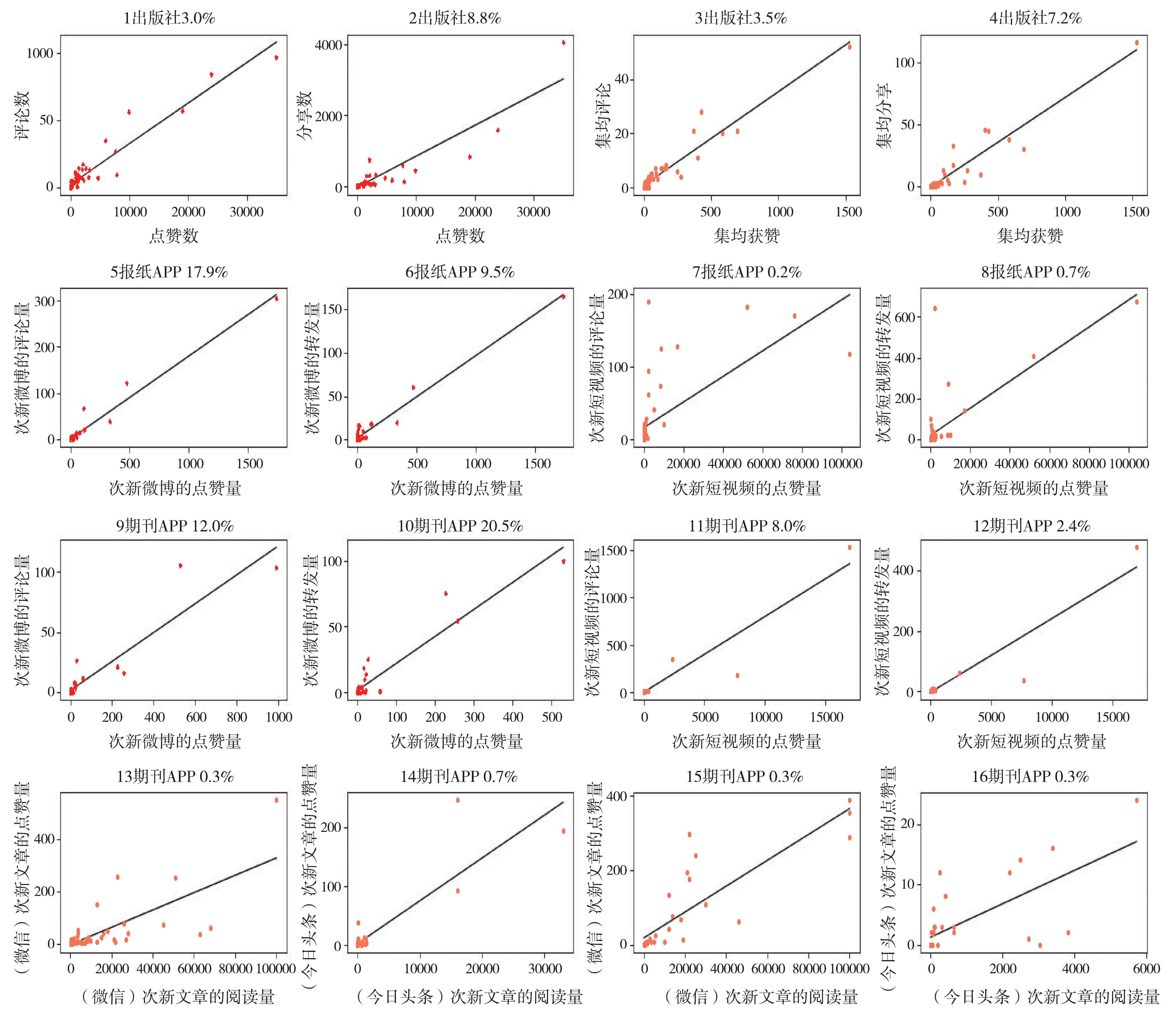 “点赞量-评论量”和“点赞量-转发量”的散点图