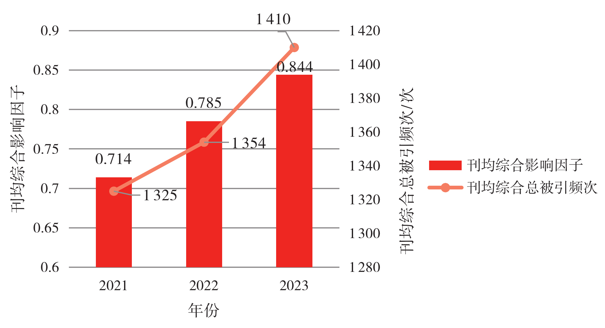 2021—2023年我国中文科技期刊的刊均综合影响因子、刊均综合总被引频次情况