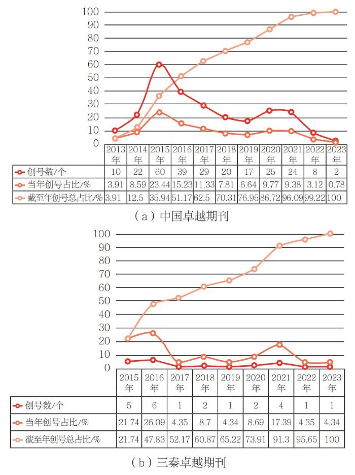 统计分析得知,280种中国卓越期刊中有256种创建了微信公众号,占比91.43%;23种三秦卓越期刊均创建了微信公众号。