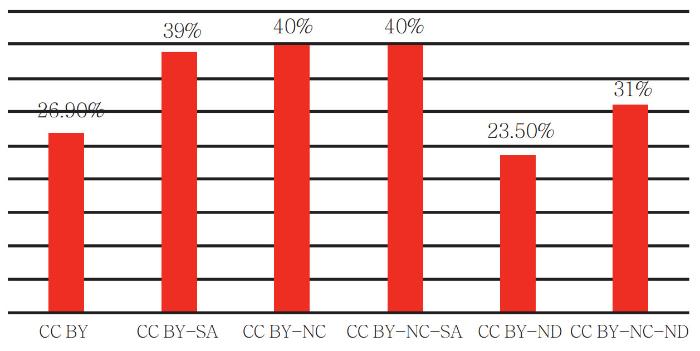 开放获取出版中,需要通过制定许可来允许公众使用文章,也就是前文所述的版权许可。这种许可有很多种 [21],目前学术出版中使用最多是CC协议。CC协议削弱了版权保护带来的封闭性,适用于那些想要保留版权,但又希望自己的作品能够开放给公众进行有限使用的作者。CC协议可用于任何受版权保护的在线作品,如电子书、文章、图形、表格、图像、插图和照片等。