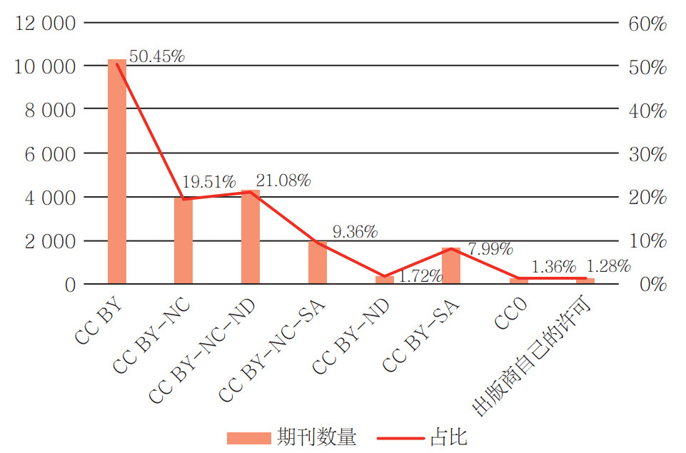 DOAJ数据库中期刊使用的CC协议类型