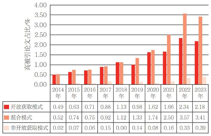 2.9 不同开放获取方式期刊的高被引论文占比