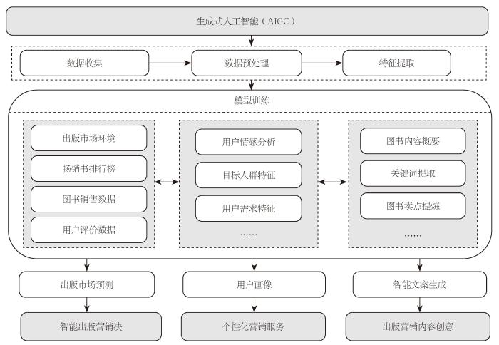 从出版行业看,AIGC基于海量数据和强大的算法逻辑推理,不仅能实现便捷高效的内容生产,而且能够基于读者的阅读习惯和偏好,生成适合社交媒体用户的个性化和多样化内容。在对读者进行精准画像的基础上,AIGC还能为读者提供个性化的图书推荐服务,帮助读者快速找到符合其需求的作品。此外,基于AIGC技术研发的AI虚拟助手或数字人,还能为读者提供在线咨询服务,从而增强用户体验,提升品牌形象。作为一种新兴技术应用和新质生产力,AIGC正在重塑出版生态,促使内容生产和出版流程发生深刻变革。[2]如何应对AIGC给出版领域带来的颠覆性变革,是当下学界亟须思考的重要问题。当前学界就AIGC在出版业中的应用前景 [3]、潜在风险 [4]、伦理合规 [5]、版权保护 [6]、治理监管 [7]等问题展开了研究。本文拟从出版营销视角考察AIGC赋能出版营销的技术逻辑与实践路径,以期为数智时代出版营销的高质量发展提供一些参考性建议。