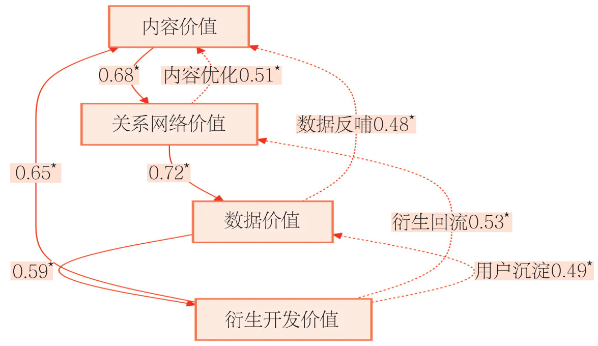注:*表示路径系数通过