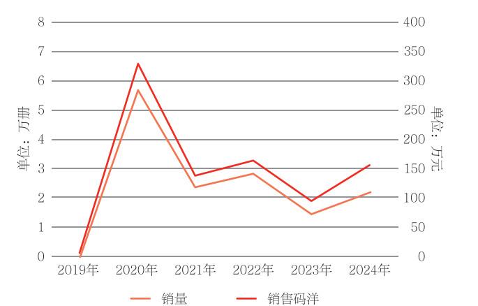 2019—2024年,卫生健康主题出版销售码洋增长与下降逐年交替。其中,2020年由于疫情防控政策实施,抗疫主题出版物市场需求增加,当年销售码洋较上年增长近46倍。(见图 2)