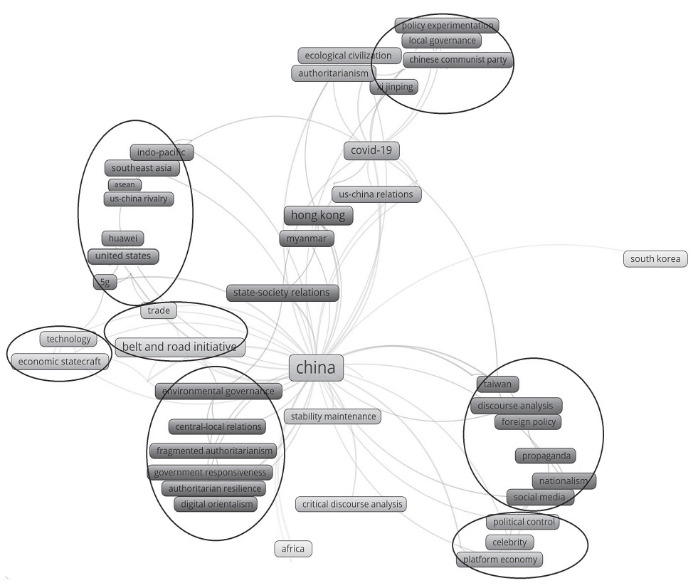 | 图 2 国际TOP文章关键词共现图谱(2023—2024年) |